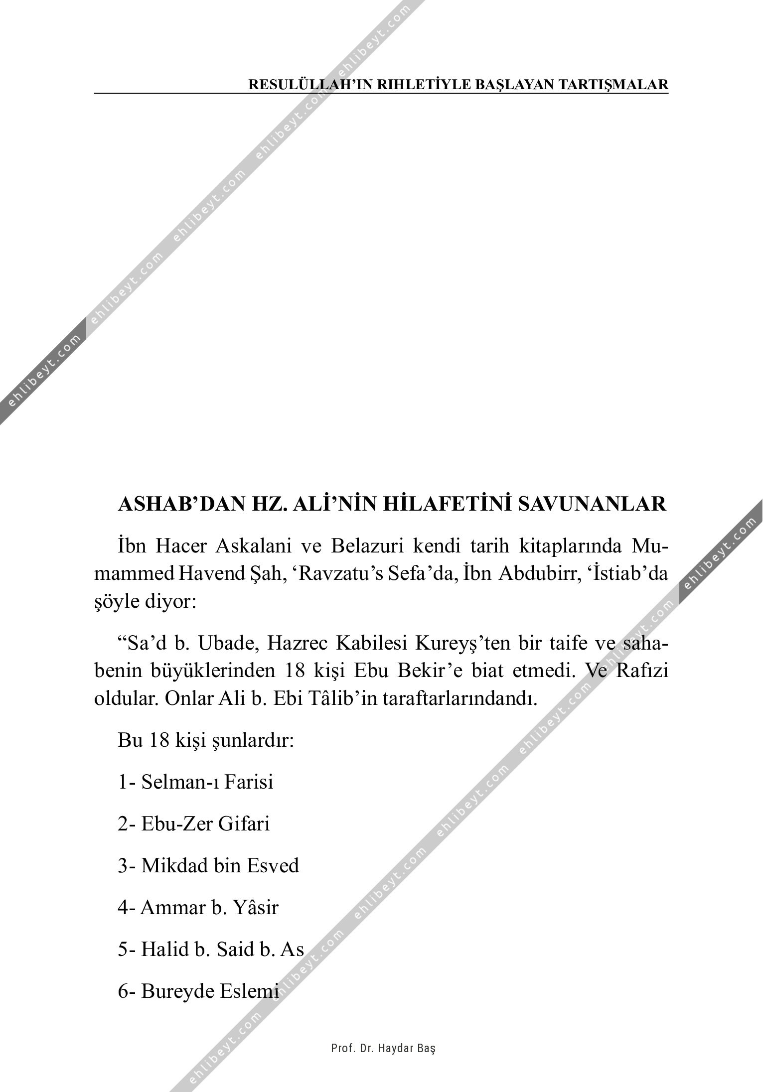 ASHAB’DAN HZ. ALİ’NİN HİLAFETİNİ SAVUNANLAR