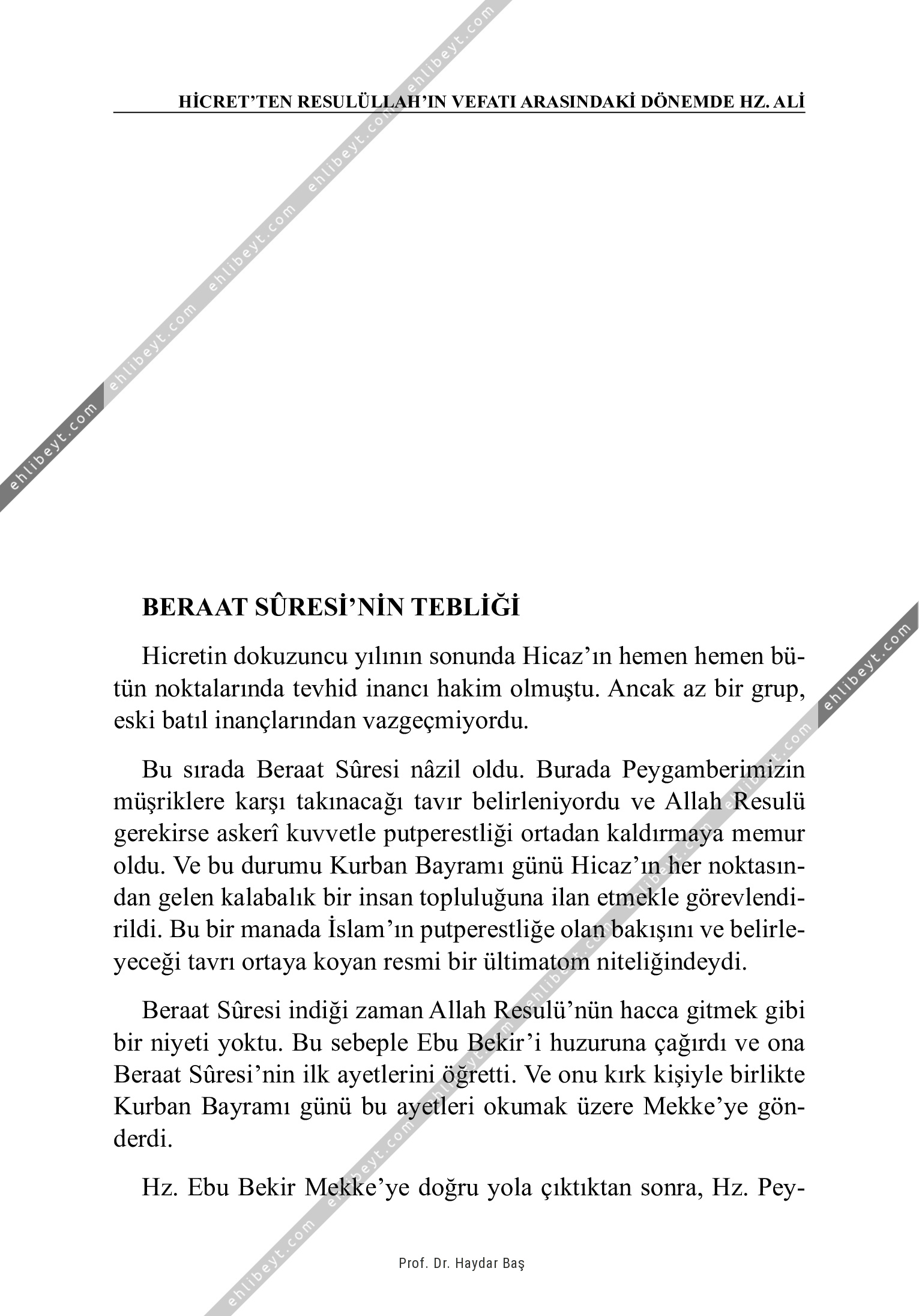 Hicretin dokuzuncu yılının sonunda Hicaz'ın hemen hemen bütün noktalarında tevhid inancı hakim olmuştu. Ancak az bir grup, eski batıl inançlarından vazgeçmiyordu. Bu sırada Beraat Sûresi nâzil oldu. Burada Peygamberimizin müşriklere karşı takınacağı tavır belirleniyordu ve Allah Resulü gerekirse askerî kuvvetle putperestliği ortadan kaldırmaya memur oldu. Ve bu durumu Kurban Bayramı günü Hicaz'ın her noktasından gelen kalabalık bir insan topluluğuna ilan etmekle görevlendirildi. Bu bir manada İslam'ın putperestliğe olan bakışını ve belirleyeceği tavrı ortaya koyan resmi bir ültimatom niteliğindeydi. Beraat Sûresi indiği zaman Allah Resulü'nün hacca gitmek gibi bir niyeti yoktu. Bu sebeple Ebu Bekir'i huzuruna çağırdı ve ona Beraat Sûresi'nin ilk ayetlerini öğretti. Ve onu kırk kişiyle birlikte Kurban Bayramı günü bu ayetleri okumak üzere Mekke'ye gönderdi. Hz. Ebu Bekir Mekke'ye doğru yola çıktıktan sonra, Hz. Pey-