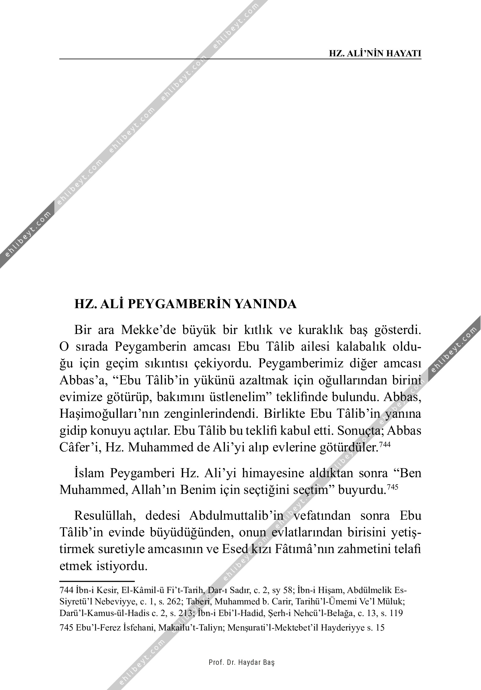Bir ara Mekke'de büyük bir kıtlık ve kuraklık baş gösterdi. O sırada Peygamberin amcası Ebu Tâlib ailesi kalabalık olduğu için geçim sıkıntısı çekiyordu. Peygamberimiz diğer amcası Abbas'a, "Ebu Tâlib'in yükünü azaltmak için oğullarından birini evimize götürüp, bakımını üstlenelim" teklifinde bulundu. Abbas, Haşimoğulları'nın zenginlerindendi. Birlikte Ebu Tâlib'in yanına gidip konuyu açtılar. Ebu Tâlib bu teklifi kabul etti. Sonuçta; Abbas Câfer'i, Hz. Muhammed de Ali'yi alıp evlerine götürdüler.744 İslam Peygamberi Hz. Ali'yi himayesine aldıktan sonra "Ben Muhammed, Allah'ın Benim için seçtiğini seçtim" buyurdu.745 Resulüllah, dedesi Abdulmuttalib'in vefatından sonra Ebu Tâlib'in evinde büyüdüğünden, onun evlatlarından birisini yetiştirmek suretiyle amcasının ve Esed kızı Fâtımâ'nın zahmetini telafi etmek istiyordu. 744 İbn-i Kesir, El-Kâmil-ü Fi't-Tarih, Dar-ı Sadır, c. 2, sy 58; İbn-i Hişam, Abdülmelik EsSiyretü'l Nebeviyye, c. 1, s. 262; Taberi, Muhammed b. Carir, Tarihü'l-Ümemi Ve'l Müluk; Darü'l-Kamus-ül-Hadis c. 2, s. 213; İbn-i Ebi'l-Hadid, Şerh-i Nehcü'l-Belağa, c. 13, s. 119 745 Ebu'l-Ferez İsfehani, […]