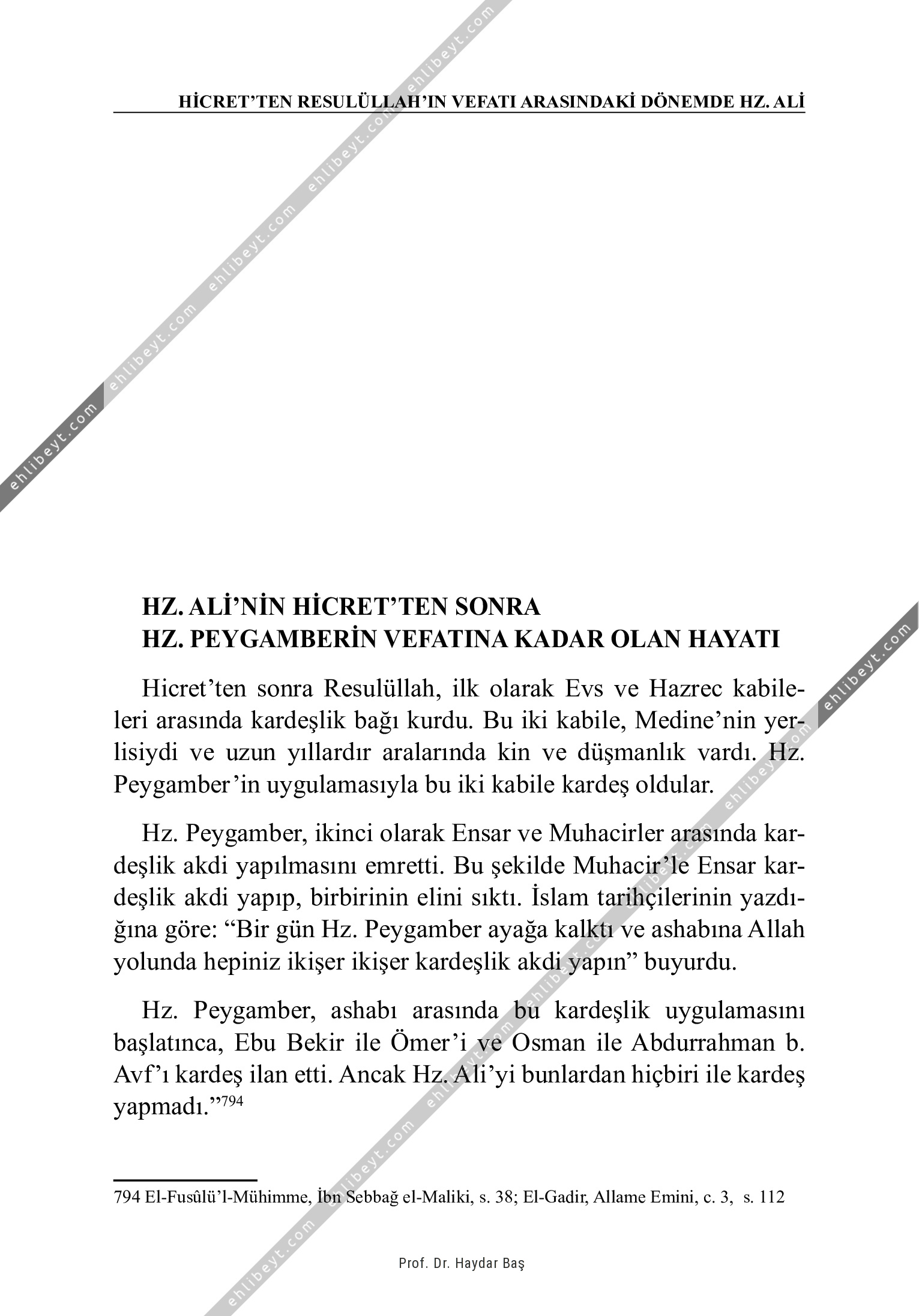 HZ. ALİ’NİN HİCRET’TEN SONRA HZ. PEYGAMBERİN VEFATINA KADAR OLAN HAYATI