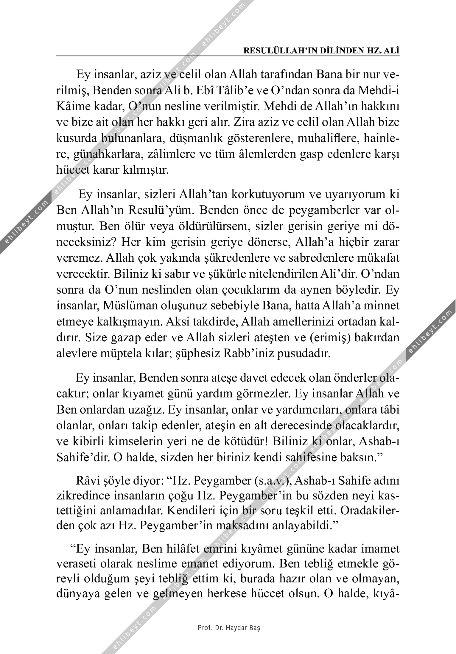 Ey insanlar, aziz ve celil olan Allah tarafından Bana bir nur verilmiş, Benden sonra Ali b. Ebî Tâlib'e ve O'ndan sonra da Mehdi-i Kâime kadar, O'nun nesline verilmiştir. Mehdi de Allah'ın hakkını ve bize ait olan her hakkı geri alır. Zira aziz ve celil olan Allah bize kusurda bulunanlara, düşmanlık gösterenlere, muhaliflere, hainlere, günahkarlara, zâlimlere ve tüm âlemlerden gasp edenlere karşı hüccet karar kılmıştır. Ey insanlar, sizleri Allah'tan korkutuyorum ve uyarıyorum ki Ben Allah'ın Resulü'yüm. Benden önce de peygamberler var olmuştur. Ben ölür veya öldürülürsem, sizler gerisin geriye mi döneceksiniz? Her kim gerisin geriye dönerse, Allah'a hiçbir zarar veremez. Allah çok yakında şükredenlere ve sabredenlere mükafat verecektir. Biliniz ki sabır ve şükürle nitelendirilen Ali'dir. O'ndan sonra da O'nun neslinden olan çocuklarım da aynen böyledir. Ey insanlar, Müslüman oluşunuz sebebiyle Bana, hatta Allah'a minnet etmeye kalkışmayın. Aksi takdirde, Allah amellerinizi ortadan kaldırır. Size gazap eder ve […]