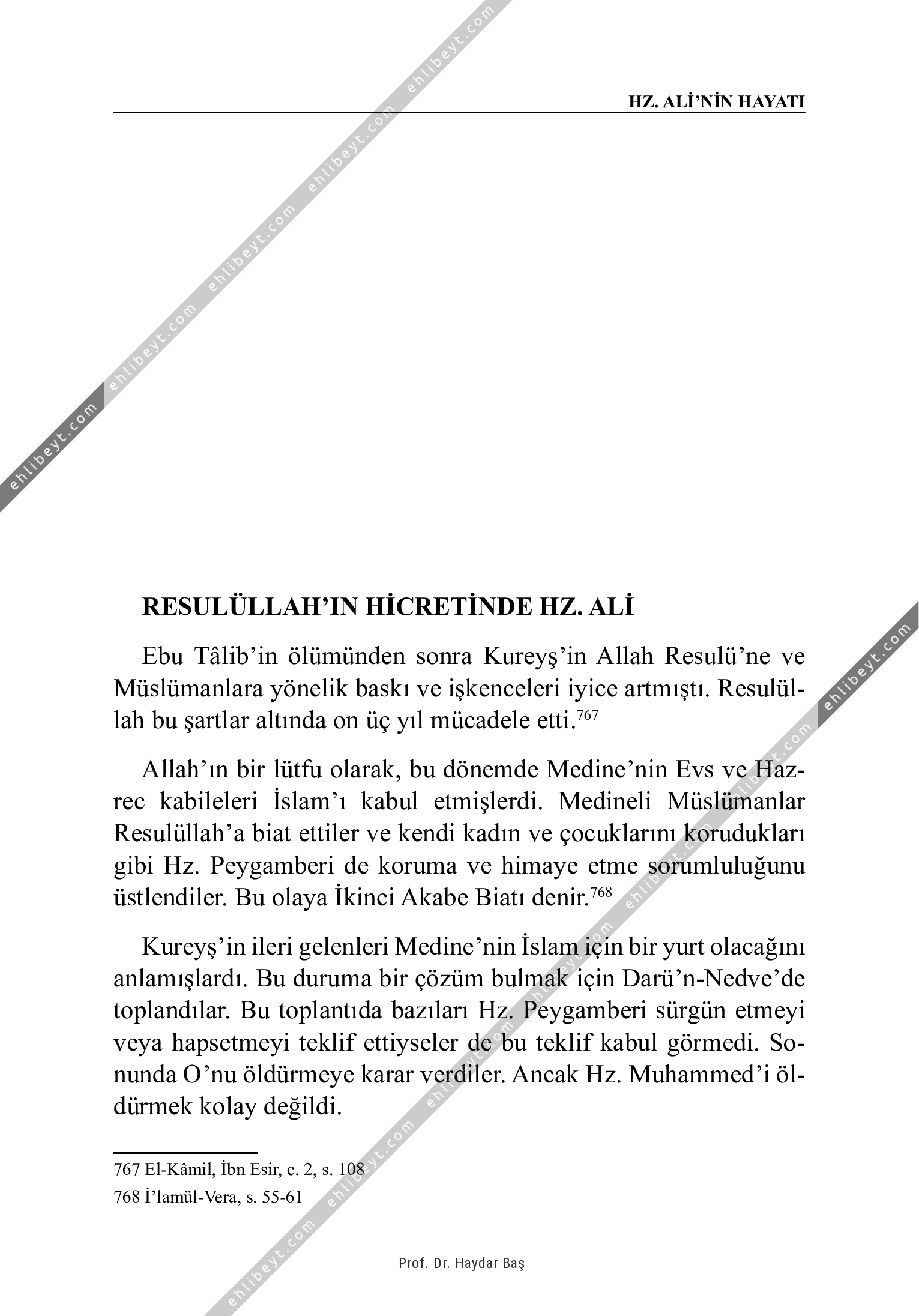 Ebu Tâlib'in ölümünden sonra Kureyş'in Allah Resulü'ne ve Müslümanlara yönelik baskı ve işkenceleri iyice artmıştı. Resulüllah bu şartlar altında on üç yıl mücadele etti.767 Allah'ın bir lütfu olarak, bu dönemde Medine'nin Evs ve Hazrec kabileleri İslam'ı kabul etmişlerdi. Medineli Müslümanlar Resulüllah'a biat ettiler ve kendi kadın ve çocuklarını korudukları gibi Hz. Peygamberi de koruma ve himaye etme sorumluluğunu üstlendiler. Bu olaya İkinci Akabe Biatı denir.768 Kureyş'in ileri gelenleri Medine'nin İslam için bir yurt olacağını anlamışlardı. Bu duruma bir çözüm bulmak için Darü'n-Nedve'de toplandılar. Bu toplantıda bazıları Hz. Peygamberi sürgün etmeyi veya hapsetmeyi teklif ettiyseler de bu teklif kabul görmedi. Sonunda O'nu öldürmeye karar verdiler. Ancak Hz. Muhammed'i öldürmek kolay değildi. 767 El-Kâmil, İbn Esir, c. 2, s. 108 768 İ'lamül-Vera, s. 55-61